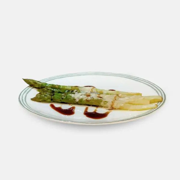 Groene asperges met parmigiano reggiano en balsamico van 12 jaar oud.