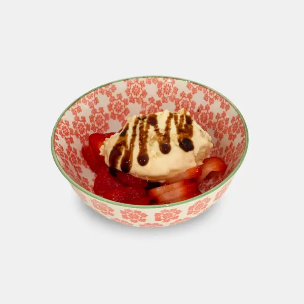verse aardbeien, crème van balsamico.
